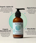 - Ingredients: Deionized Water, Sesame Oil (Sesamum Indicum), Caprylic/capric Triglycerides, Shea Butter (Butyrospermum Parkii), Cetearyl Glucoside, Carrageenan Gum, Vegetable Glycerin, Caprylhydroxamic Acid, Caprylyl Glycol, Sodium PCA, Green Tea (Camellia Sinensis Leaf), Jojoba (Simmondsia Chinensis), Squalene, Organic Macadamia Oil (Macadamia Ternifolia Seed Oil), Organic Jojoba Oil (Simmondsia Chinesis), Yeast Extract, Glucosamine HCL, Vitamin E (Tocopheryl), Sodium Hyaluronate, Algae Extract, Orchid Extract (Orchis Mascula), Titanium Dioxide