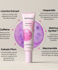 - Ingredients: Deionized Water (Aqua), Caprylic/Capric Triglycerides, Shea Butter (Butyrospermum Parkii), Niacinamide, Syn-Eye (Peptide: Palmitoyl Tripeptide 5-Panthenol-Sodium Hyaluronate), Glyceryl Stearate, Glycerin, Matrixyl Synthe '6 (Peptide: Glycerin-Aqua-Hydroxypropyl Cyclodextrin-Palmitoyl Tripeptide-38), Polyglyceryl-2 Stearate, Glyceryl Stearate, Stearyl Alcohol, Regu-Age (Peptide: Glycine Soja [Soybean] Protein-Hydrolyzed Rice Protein-Superoxide Dismutase), Vitamin C (Sodium Ascorbyl Phosphate), Squalane (vegan), Caffeine, Hesperidin, Licorice (Glycyrrhiza Glabra Extract), Isopropyl Palmitate, Argan Oil (Argania Spinosa), AQUACACTEEN (Opuntia Ficus-Indica Stem Extract - Glycerin - Aqua), Microcrystalline Cellulose (and) Cellulose Gum, Vitamin E (Tocopherol), Chamomile (Matricaria Recutita Flower Extract), Phenethyl Alcohol, Caprylyl Glycol, Ethylhexyl Glycerin, Pomegranate Seed Oil (Punica Granatum), Xanthan Gum, Camellia Sinensis (White Tea) Extract , Steam Distilled Citrus Aurantifolia (Lime) Extract, Ceramide 3