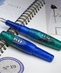 Emerald Sea features a mesmerizing blend of deep emerald greens and rich blues, highlighted by specks of red. This pen embodies the vibrant life and energy found beneath the sea, making it perfect for anyone seeking a creative and colorful writing instrument in a compact, portable design.