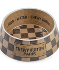 Introducing our chic and stylish checker pattern Chewy Vuiton Dog Bowls!