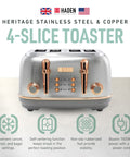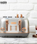 Haden Heritage 4 Slice Wide Slot Stainless Steel Toaster, Steel & Copper
