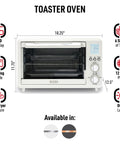 - Equipped with a metal air-fry basket, bake pan, broil rack, and a slide-out crumb tray, this toaster oven provides all the tools you need for effortless cooking and easy cleanup
