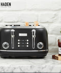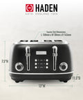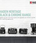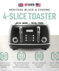 Haden Heritage 4 Slice Wide Slot Stainless Steel Toaster, Black & Chrome
