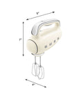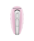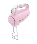 Whip, whisk, blend and knead in sweet retro style with this handheld mixer from SMEG. With its charming curves, stainless steel accessories and chrome details, the glossy pink mixer is a delight to work with. The backlit white LED display shows the current mixing speed and the count-up timer, then disappears into the chrome control panel when not in use. Fitted with a soft-touch grip, ergonomic handle and Smooth Start system, the hand mixer provides a comfortable experience as you whip eggs, mix cake batters and knead bread doughs.