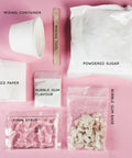 The kit provides all the necessary ingredients: gum base, gum flavoring, corn syrup, mixing container, mixing tool, waxed paper, and complete instructions.