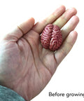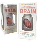 This science kit starts out as a great looking detailed tiny brain anatomy model. When placed in water over the course of days it demonstrates the super water absorbing properties of polymers as it becomes a big brain.