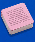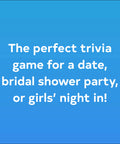 Featuring 50 questions about love and romance drawn from history, literature, science, and pop culture, this sweet little trivia game is perfect for a cozy, super fun date with a sweetheart, a bridal shower party, or a girls' night in.