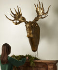Eugene the Moose commands attention as a striking statement piece for any room. This hand-cast metal sculpture features a distinguished vintage brass finish and substantial presence—ideal for living rooms, libraries, game rooms, or children's spaces. The sculptural form measures 31.5"H × 15"W at its widest point and mounts securely to the wall via included hardware. Each piece carries the subtle variations inherent to hand-casting, ensuring genuine character. A bold accent that transforms walls into curated focal points.