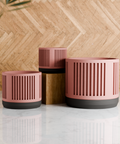 We designed the HERITAGE planter to merge classic design elements with contemporary function, drawing inspiration from traditional craftsmanship. Its refined vertical slats and robust silhouette create a timeless look, offering both durability and style for any indoor or outdoor setting. The drip tray/saucer is custom-fitted and designed to perfectly complement the planter.