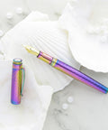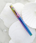 A treasure from the deep! Introducing Retro51’s Mermaid Popper — Crafted to mimic the mesmerizing texture of mermaids, this pen is shimmering with rainbow ion plating and adorned with acid-etched scales. Matching accents, a shell-inspired top disc, and a pearlescent tube, make these writing instruments a true siren’s call!
