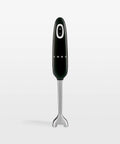 This glossy black hand blender offers modern functionality with a hint of retro-futuristic style. Five speeds plus a turbo function ensure total control over the blended texture, whether you're making chunky chowder, rustic applesauce or silky ganache. Stainless steel blades make short work of ingredients while the immersion blender's ergonomic handle provides a comfortable hold. The blending arm twists off for easy cleaning and compact storage.
