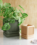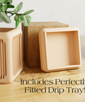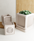 The Ventra Planter is a modern and sculptural home for your plants, featuring a sleek, ventilated design that promotes airflow and root health. Its minimalist aesthetic, paired with precision-cut slats, adds a touch of sophistication to any space. Perfect for succulents, cacti, or small houseplants, the Ventra Planter blends functionality with contemporary elegance.