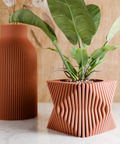 The TIDE planter was inspired by our TIDE vase design. It was created to embody the graceful movement of ocean waves, translating that fluidity into a modern, sculptural design. Its twisted silhouette and ribbed texture bring a sense of calm and elegance to any space, serving as a captivating centerpiece for your floral arrangements. Perfectly fitted drip tray saucer included!
